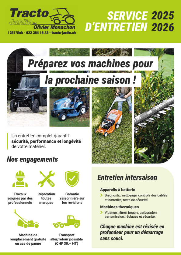 Pour vos entretiens, vos révisions intersaison, une réparation, envoyez-nous un mail à revision@tracto-jardin.ch ou remplissez le formulaire ci-dessous :